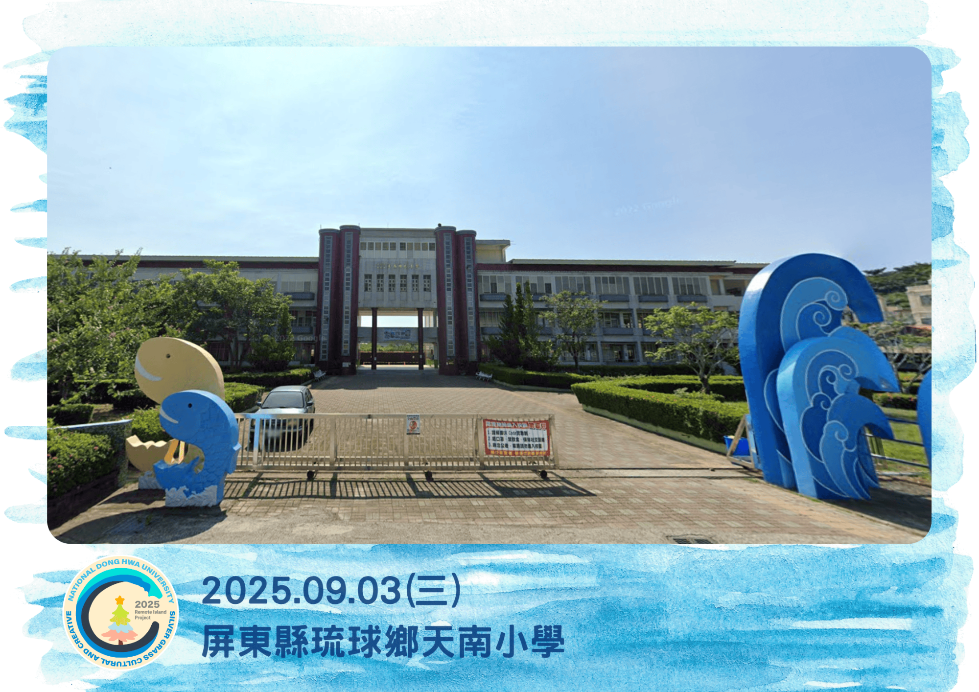 校園以海洋為主題設計,建築色彩活潑,牆面彩繪海龜、魚群、波浪等圖案,展現童趣與地方特色。學校積極推動海洋教育,安排學生搭乘玻璃船觀察綠蠵龜與海底生態,並結合環保議題,引導學生關懷海洋環境。